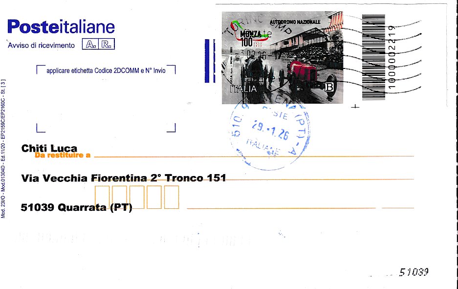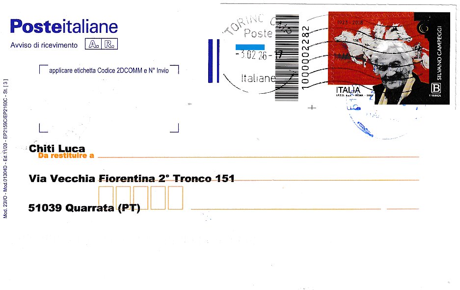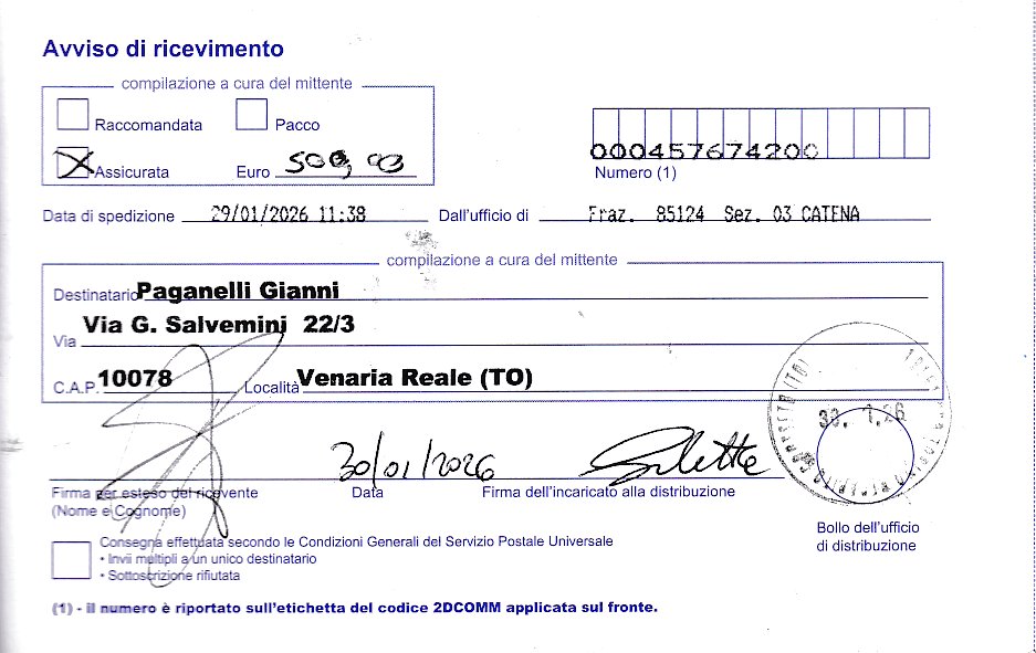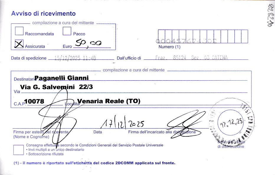 | Il materiale filatelico e' protocollato secondo la sigla CAB………
