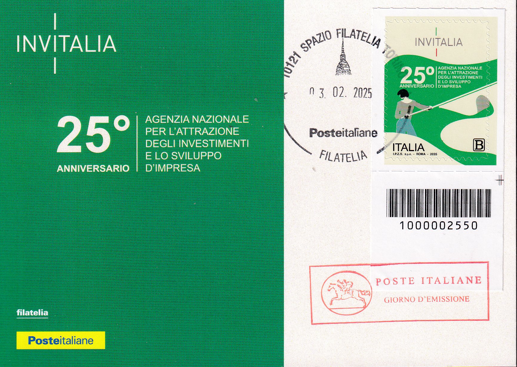 | CAB2580 | v02 | 1/1 | 28-apr-25 | privato | F.D.C.(Cart.) | p | INAIL | [a fronte dittico con logo MIMIT - a retro CAB-sb] | or | or | + | i | 10121 Spazio Filatelia Torino - Filatelia | [cart. Poste CAB16999] | 1 | 1 | ||