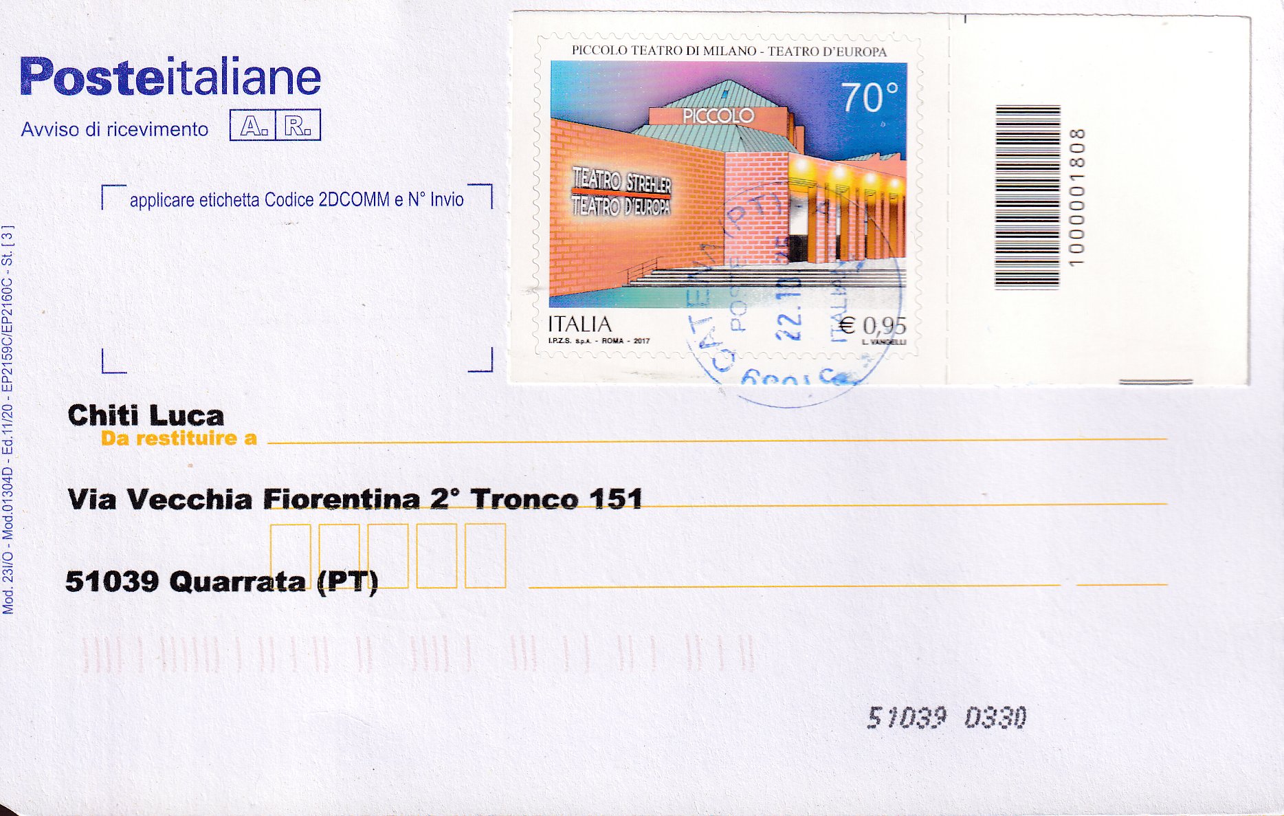 con francobollo/i con appendice Codice a Barre |