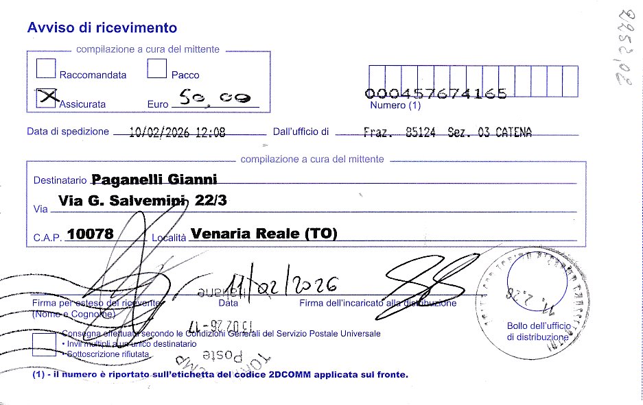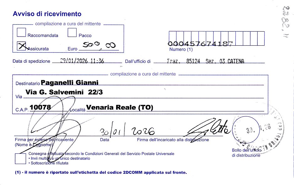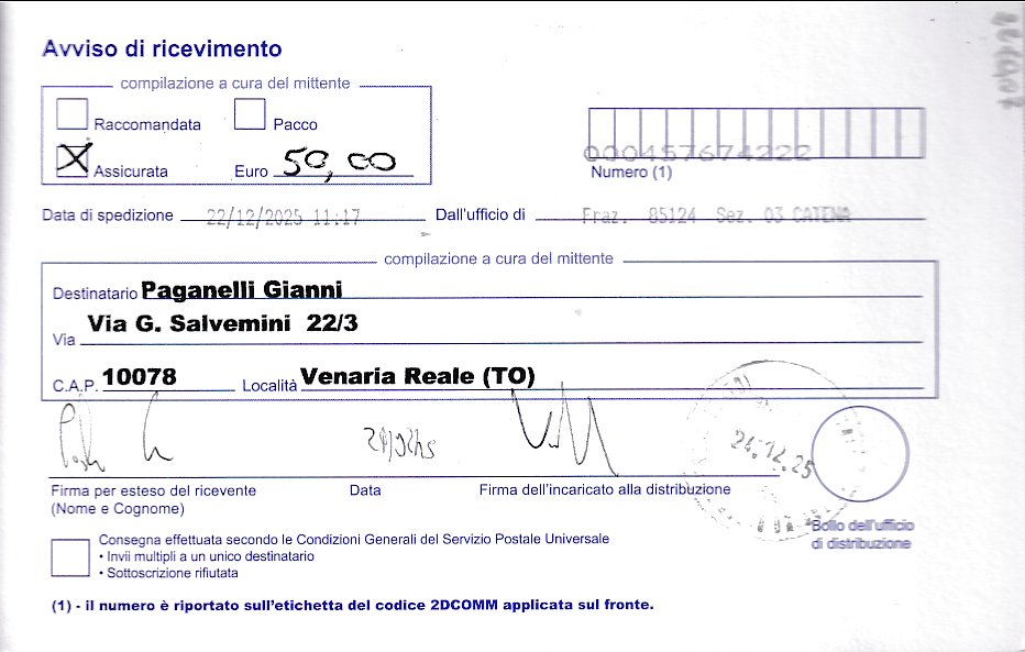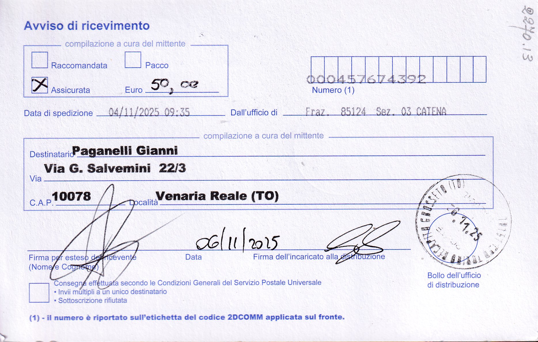 | Il materiale filatelico e' protocollato secondo la sigla CAB………