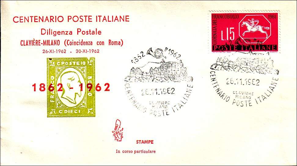 | I | CMM1621123 | v01 | 2/17 | 23-nov-62 | Centenario Poste Italiane | 10(901) | sp | or | - | n | Centenario Poste Italiane - Brennero-Milano [Diligenza Postale Brennero-Milano (Coincidenza con Roma) 23.XI-1962 - 30.XI.1962] | a0-00.0-aaa.0 | 1 | |||