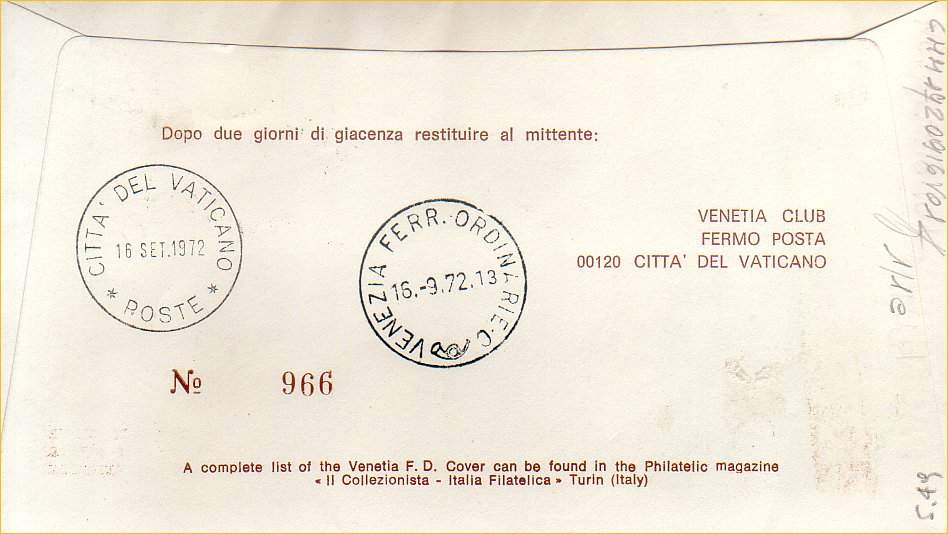| SCV | CMM1720916 | v01 | 1/1a | 16-set-72 | Paolo IV a Venezia | 50 (519) | sp | or | + | i | Poste vaticane - Paulus S.S.VI Utinum Petit Eucharistiae Sacramentum - Una Cum Fidelibus Adoraturus | c8-101.1-fsy.4 | 1 | |||