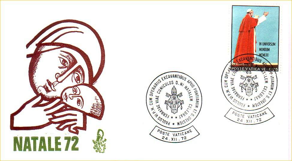 | SCV | CMM1721224 | v02 | 1/1 | 24-dic-72 | Natale 1972 | 25 (496) | sp | or | - | Poste vaticane - Paulus VI P.M. Cum Operariis Excavantibus Apuo Pontianum et S. Orestem - Ferratae Viae Cuniculos . | c8-97.1-hsy.4 | 1 | ||||
