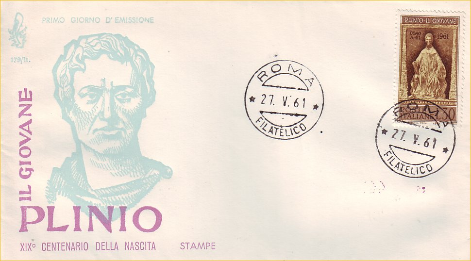 | I | Plinio | 27/05/1961 | VeCb | 179 | v01 | 1/1 | 30 | or | or | - | n | Roma - Filatelico (1tp) | c5-105.1-fsy.4 | qb | b.fdc | 1 | |||