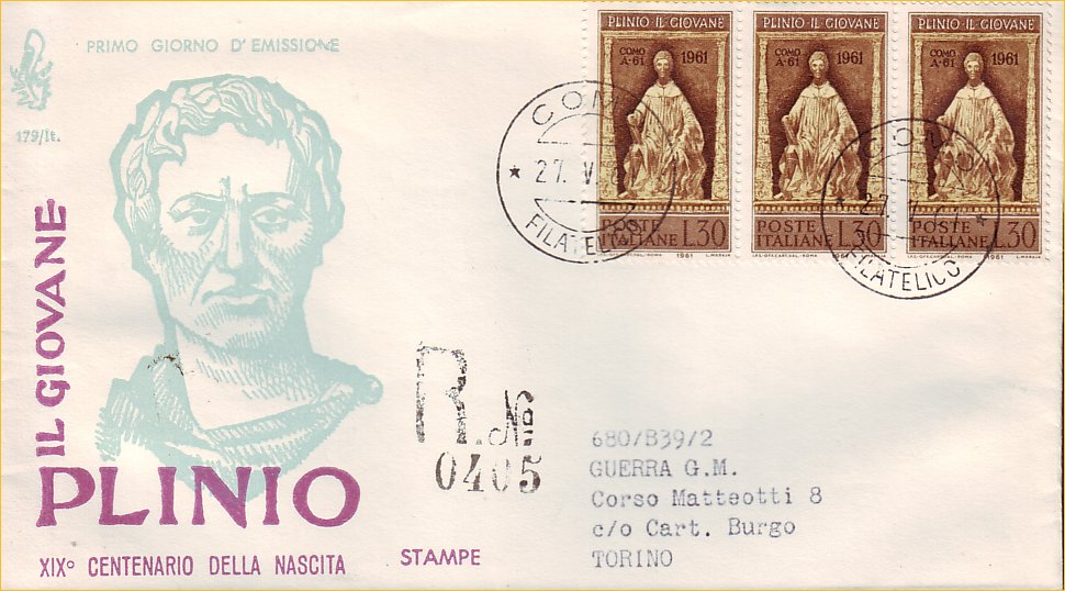 | I | Plinio | 27/05/1961 | VeCb | 179 | v02 | 1/1 | 30 | or | or | - | n | Roma - Filatelico (3tp) | c5-105.1-fsy.4 | qb | b.fdc | 1 | |||