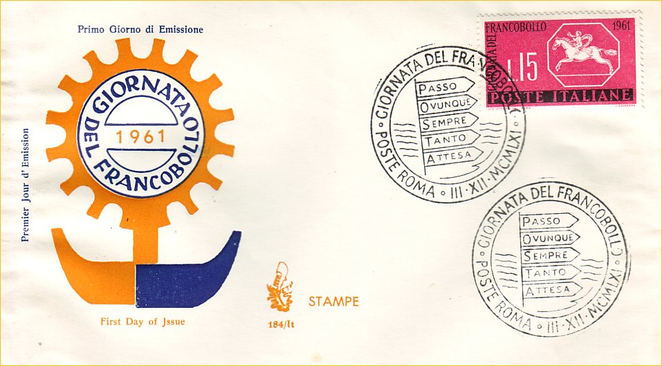 | I | Giornata del francobollo | 03/12/1961 | VeCb | 184 | v08 | 1/1 | 15/15 | sp | or | + | i | Poste Roma - Giornata del frabcobollo | tb-arr-mp | c5-105.1-fsy.4 | qb | b.fdc | 1 | ||