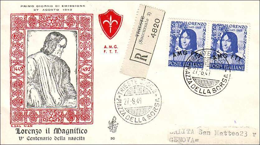 | TrA | 30 | v01 | 1/1 | 27-ago-49 | Lorenzo il Magnifico | 20-20 | or | r1 | + | i | Trieste Succ. 3 - Piazza della Borsa | c2-83.1-fst.6 | 1 | |||