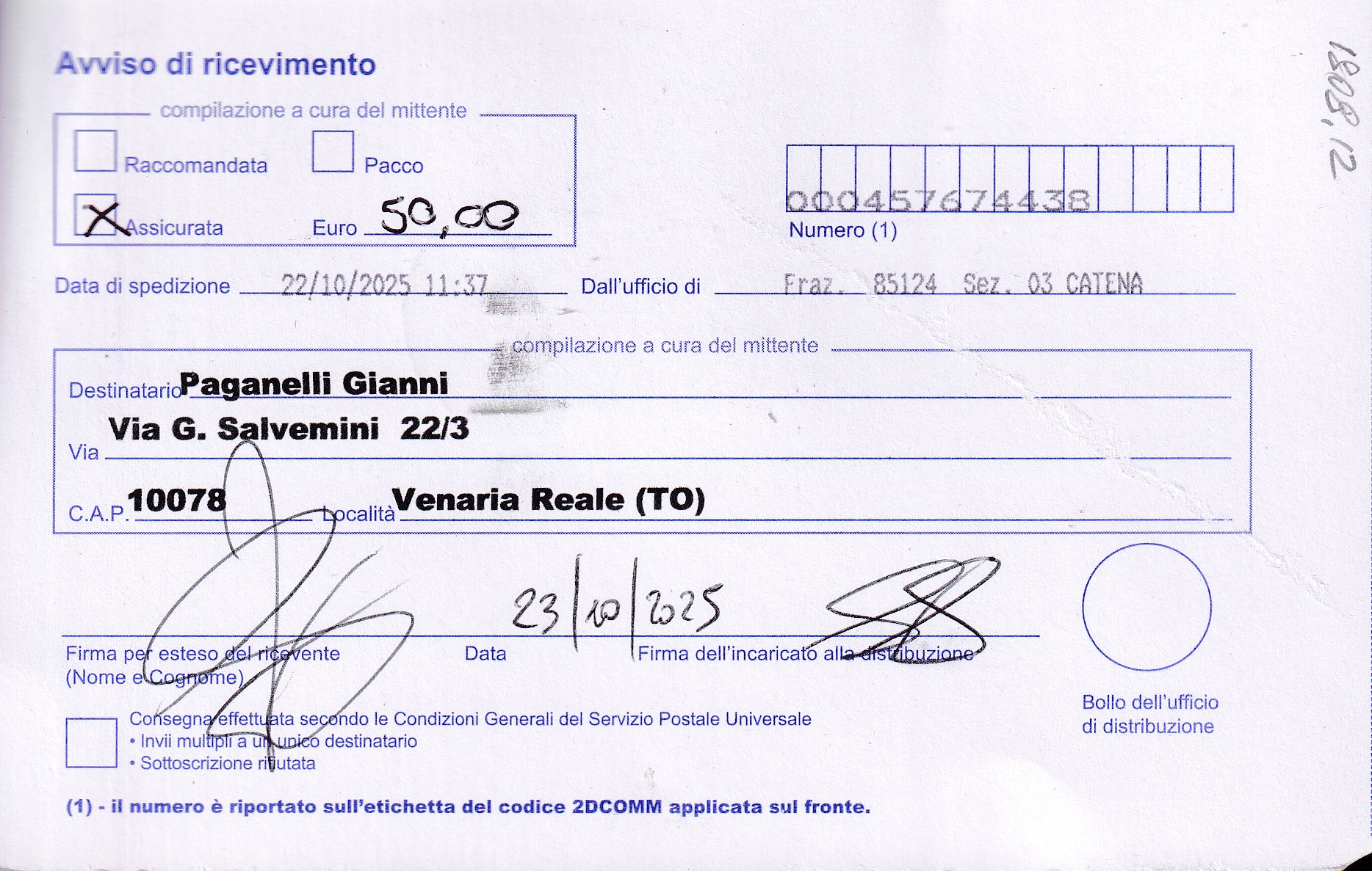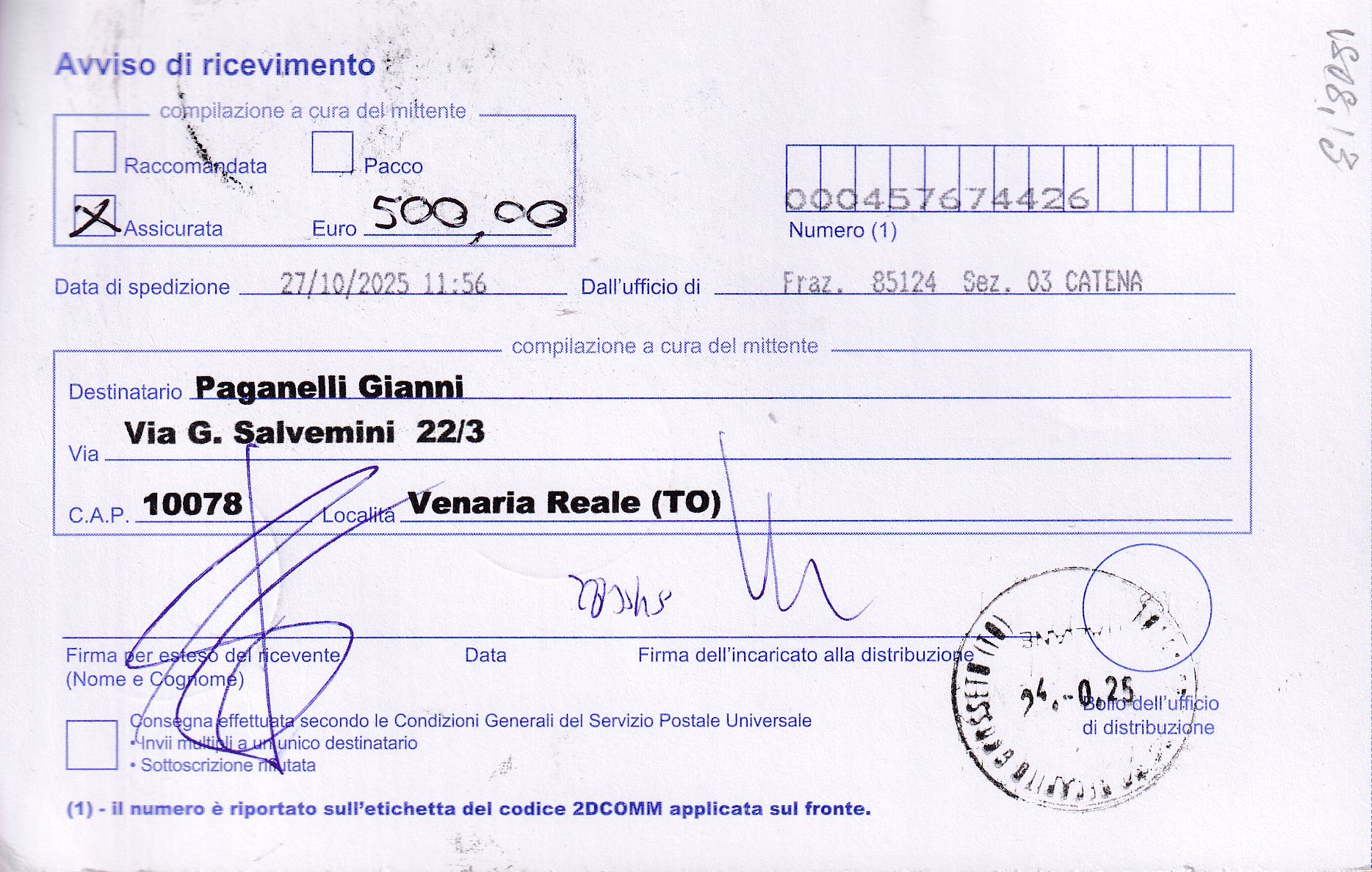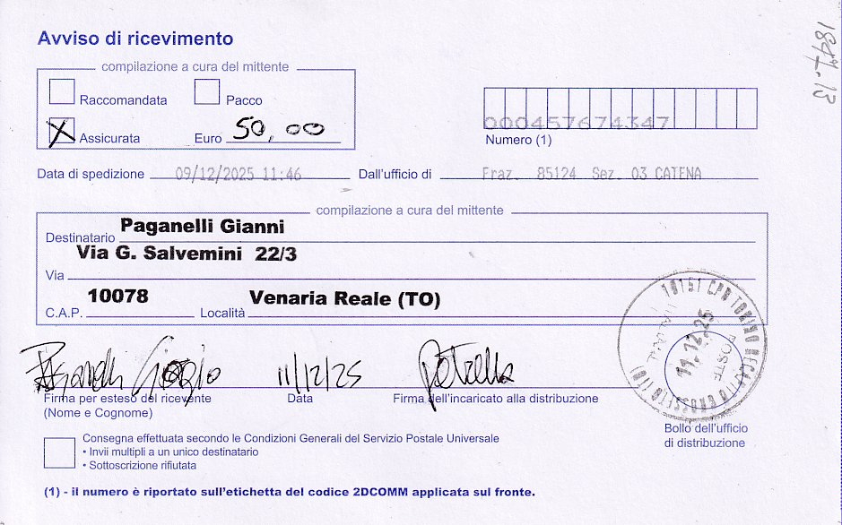 ricevuta di consegna |