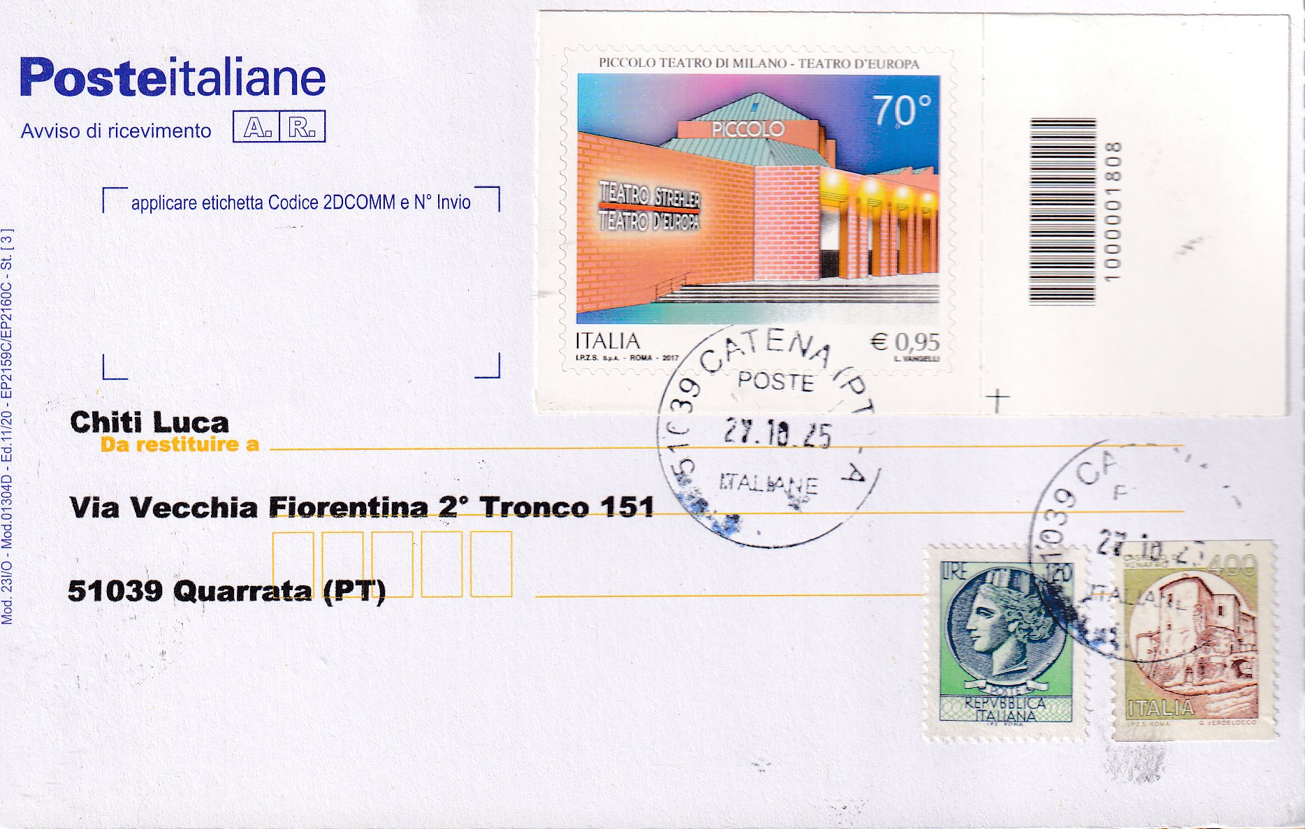 con francobollo/i con appendice Codice a Barre |
